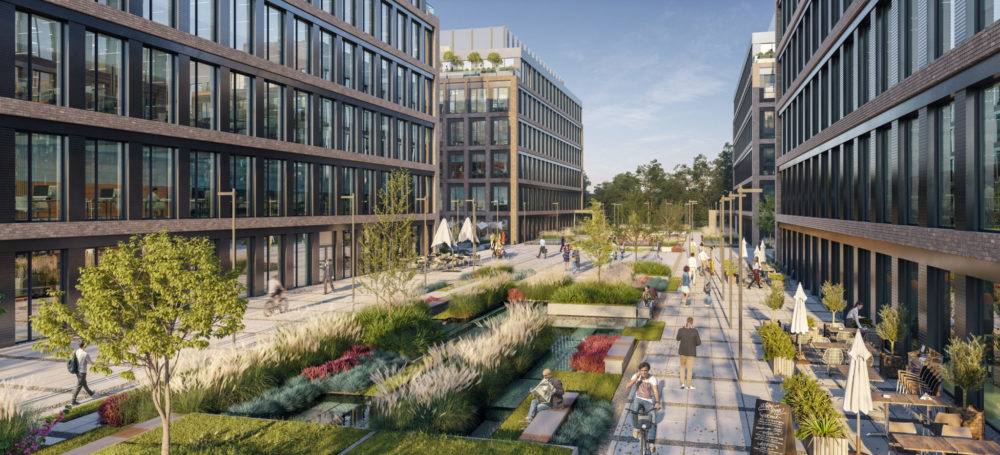 The project has a wide range of ecological solutions, for example photovoltaic panels – energy from them will be used in the common parts of the property. Thanks to this feature, the buildings will be characterized by high energy efficiency. The well-being of employees will be ensured by an innovative ventilation system equipped with UV lamps, thanks to which the air in both office spaces and in the underground car park will be 99.9% pollution-free. Large, glazed areas will provide tenants with excellent access to daylight, which has a key impact on the well-being and productivity of employees. Internal sun blinds will allow to regulate sunlight depending on people’s needs, and the easy to open window modules will provide access to fresh air.